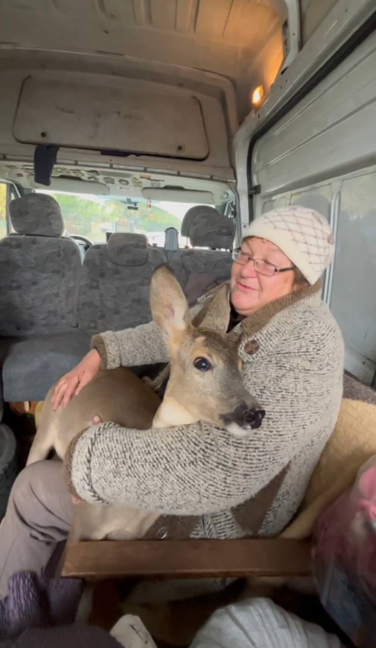 Козулю принесли до них українські військові ще зовсім крихітною, щоб урятувати від холоду та голоду. Родина вигодувала її молочком, доглядала, зігрівала — і Пискля виросла серед свійських тварин, щиро прив’язавшись до людей.