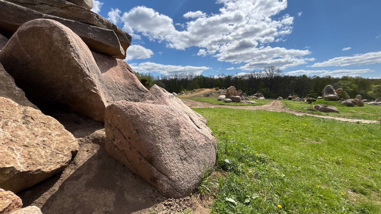 Серед зелених галявин і дерев тут розташовані скам’янілі велетні — мегаліти, привезені з різних куточків України. Серед них є й справжній рекордсмен, вага якого сягає 34 тонн. Усі ці камені разом створюють природну галерею просто неба, яку часто називають «парком тисячі каменів». Кожен гігант має свою форму, колір і історію, а разом вони утворюють атмосферне й по-справжньому сакральне місце.