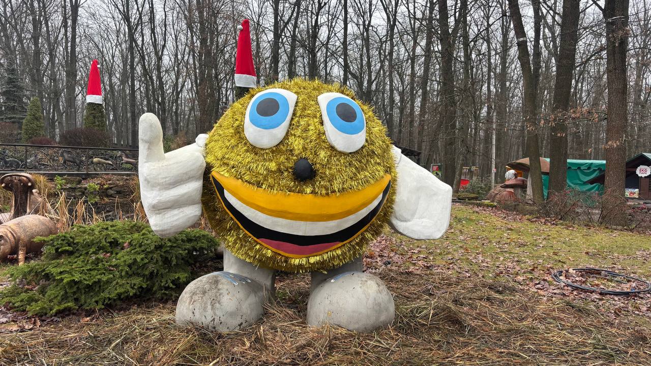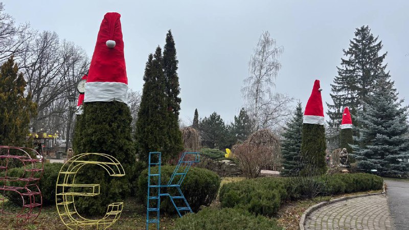 Цієї зими навіть туї в Екопарку святкують: на них з’явилися яскраві червоні шапки Санти. Локація одразу дарує легкий гумор і позитивний настрій — відвідувачі зупиняються біля них, щоб сфотографуватися.